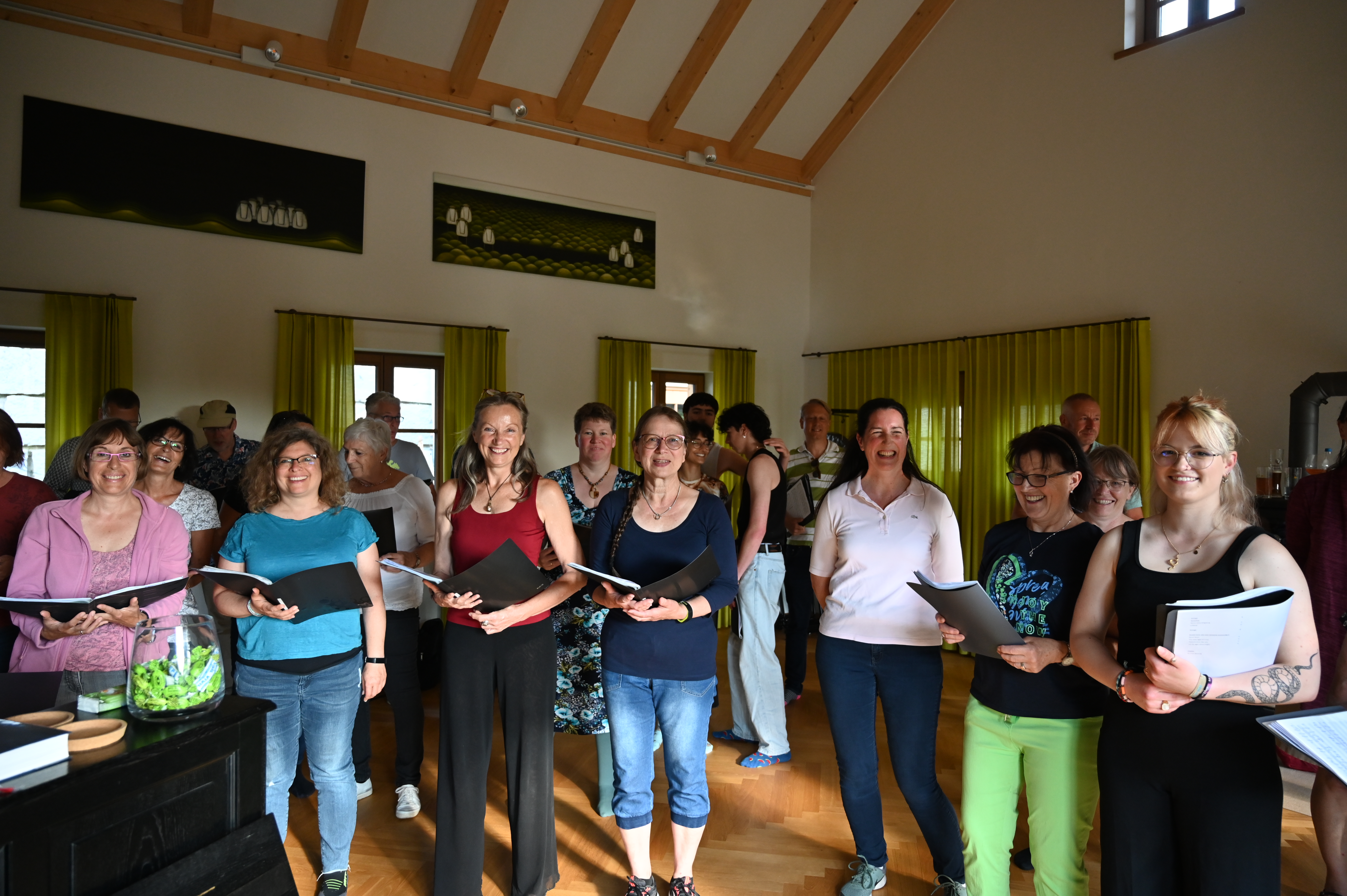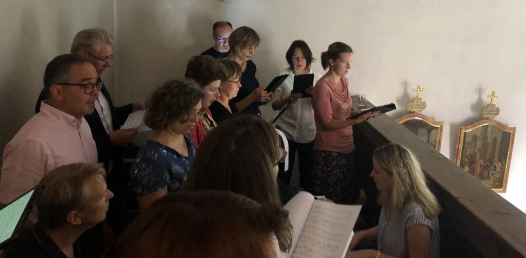 Am Abend trafen wir bei Silvia, unserer Interimschorleitung, auf ihren Chor. Nach dem Vergnügen einer gemeinsamen Chorprobe genossen wir anschließend einen noch vergnügteren Abend mit Speis und Trank. Hier nochmal ein herzliches Vergelt’s Gott an Silvia und ihren Langfurther Chor!