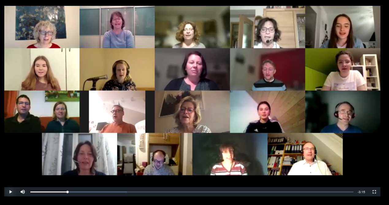 Der große Chor Quintessenz und der Jugendchor machten gemeinsam mit bei der Oster-Challenge der Raiffeisenbank München-Nord eG. Nach über 100 Stunden Online-Training entstand ein tolles Video zu dem Lied „One Call Away“ . Ein paar Einblicke …