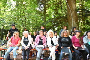 Am Sonntagmorgen ging es entweder zu Fuß oder mit einem Shuttlebus zum Brotjacklriegl, wo wir gemeinsam mit dem Langfurther Chor den Gottesdienst mitten im Wald begleiten durften.