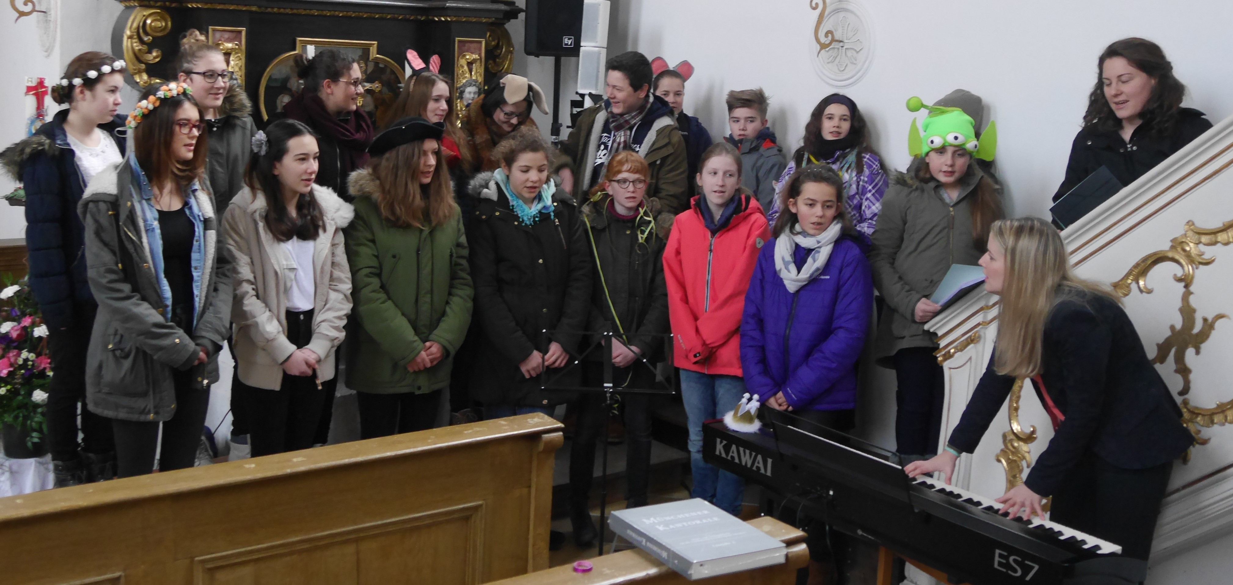 Musikalische Gestaltung eines Gottesdienstes in der Inhauser Marienkirche nur durch den Jugendchor. Es ist Faschingszeit!