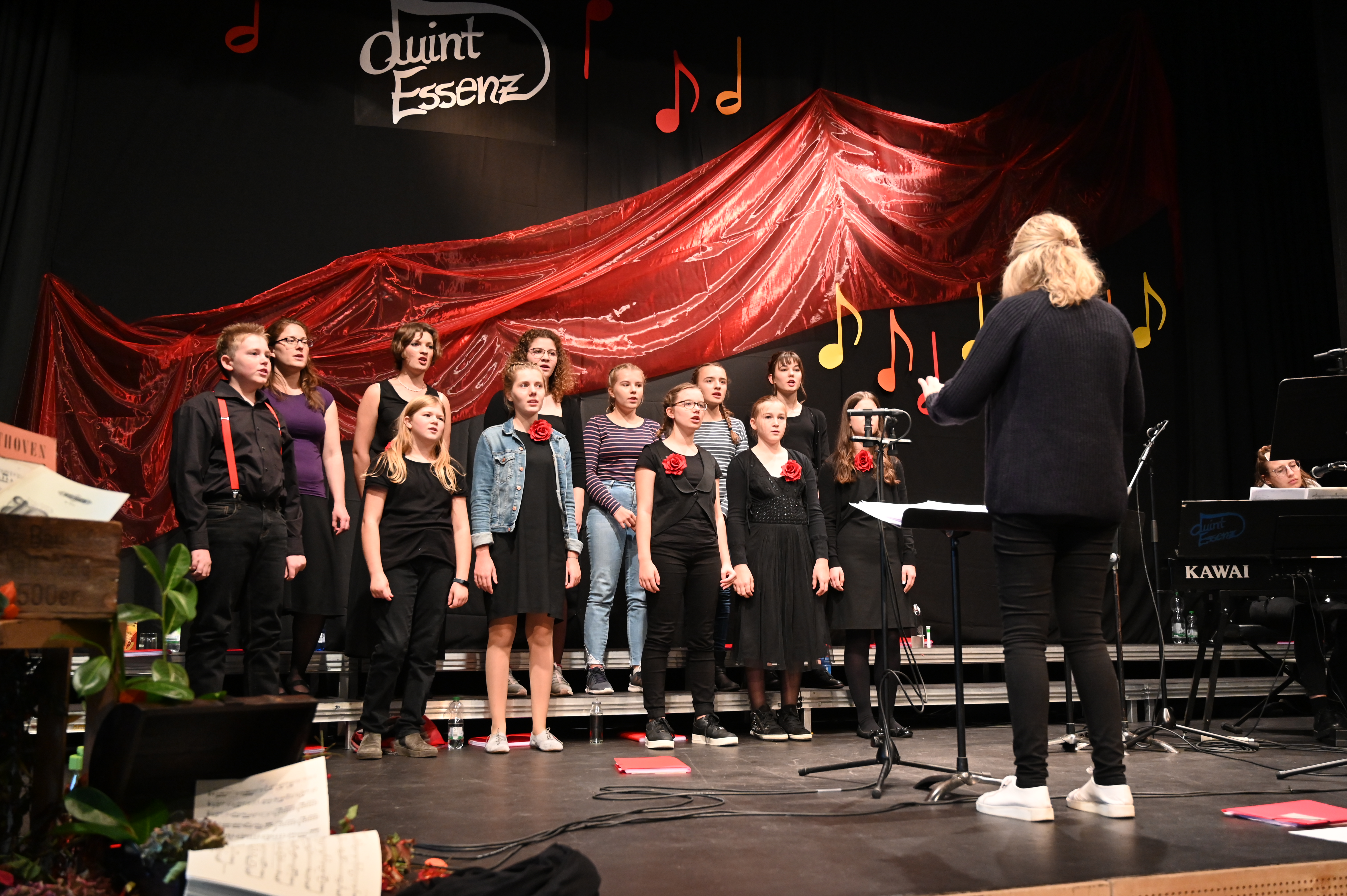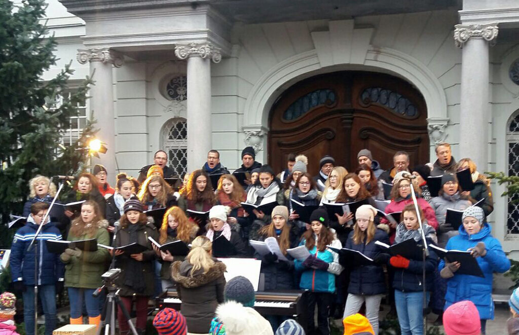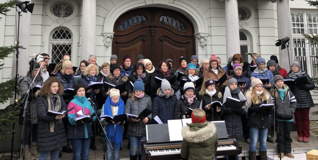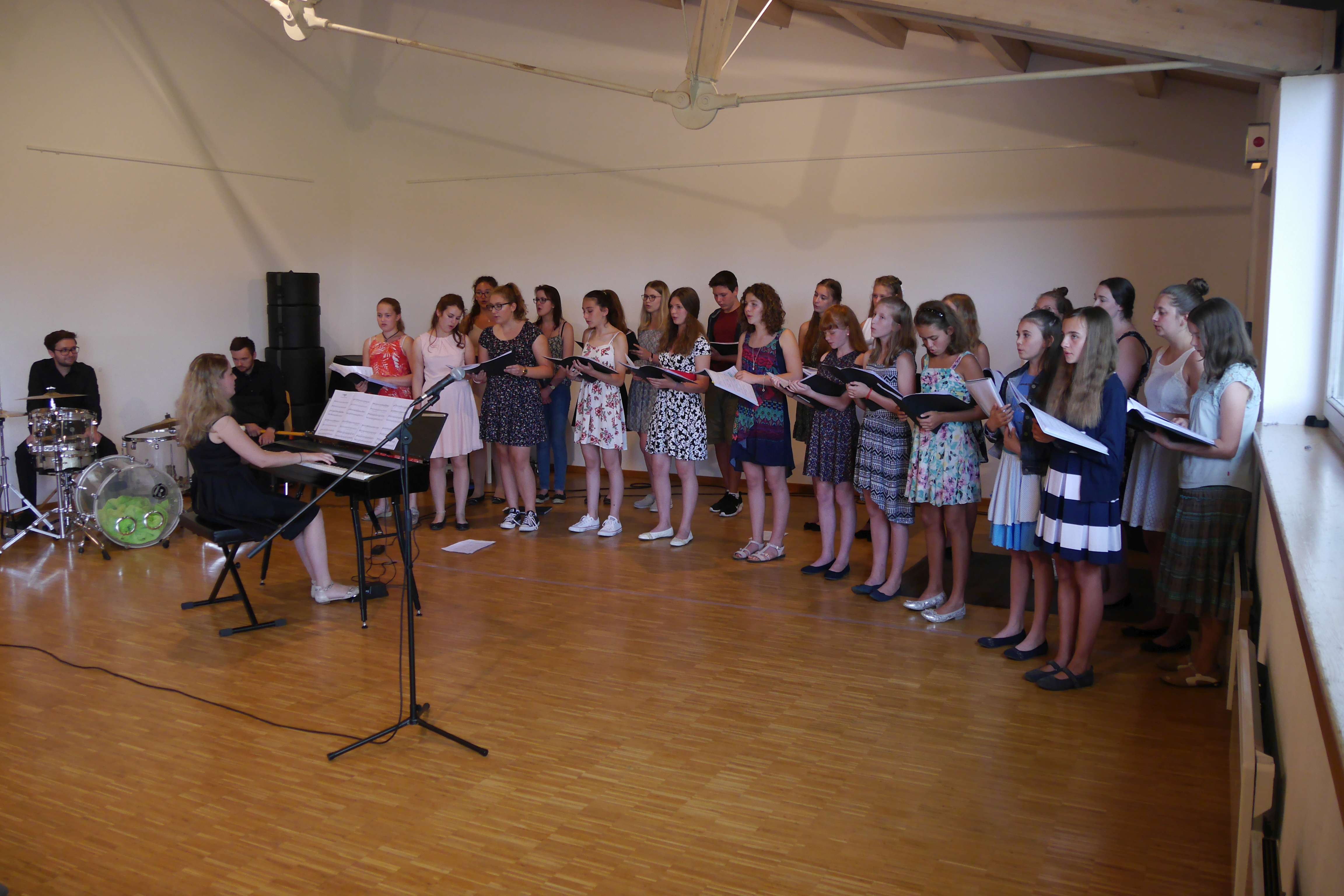 Begleitet von der Chorleiterin Eva Prielmann am E-Piano und Johannes Jahn am Schlagzeug.